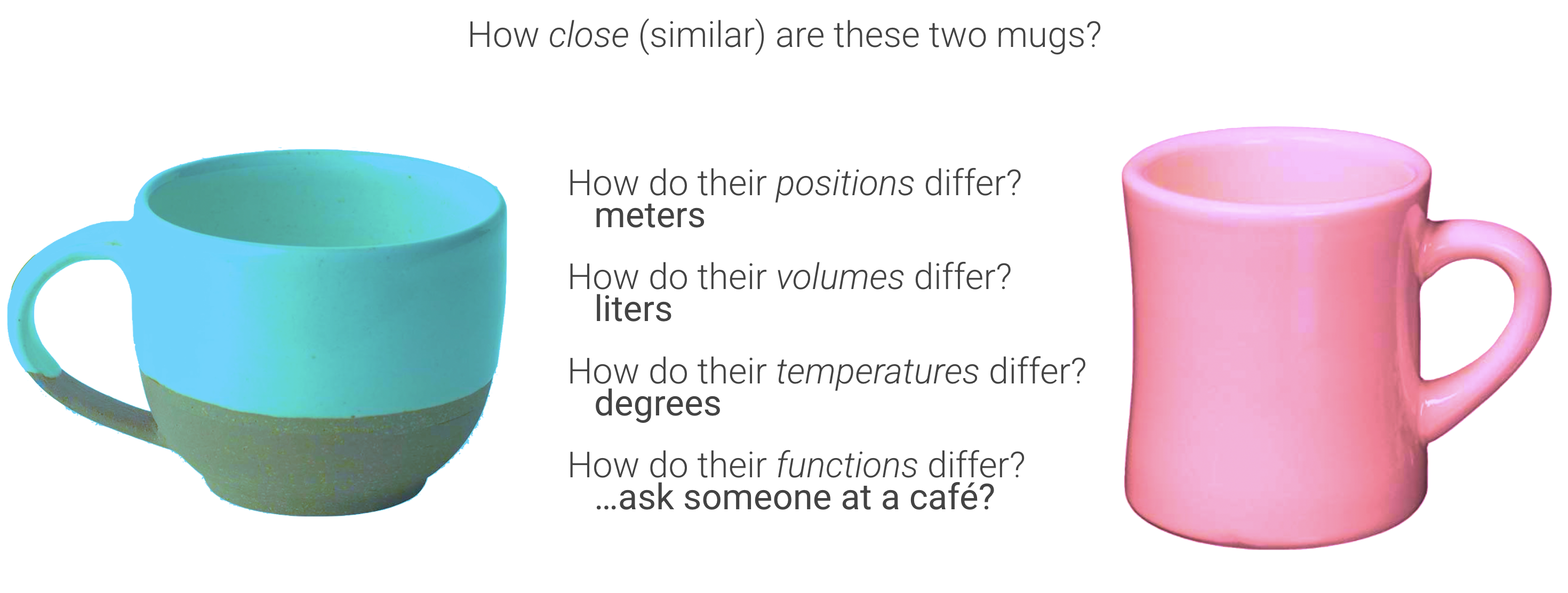 \(\ell_p\) norms – Manhattan \(p{=}1\), Euclidean \(p{=}2\), Chebyshev \(p{=}\infty)\); true metrics.